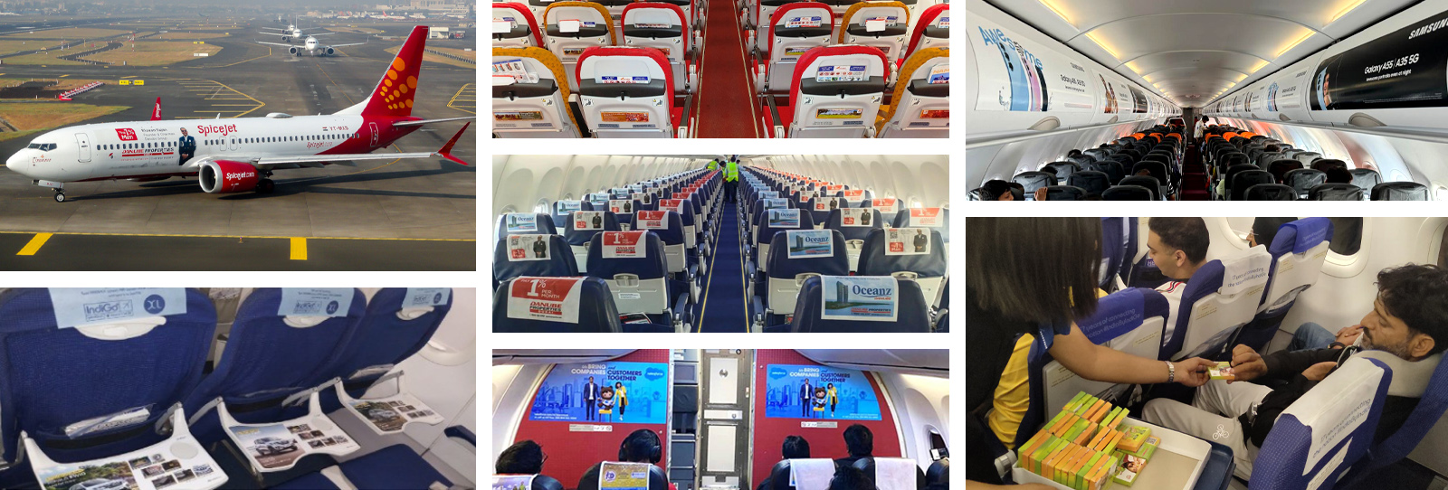 • In-flight advertising (seatback screens, magazines, tray tables, overhead bins)
